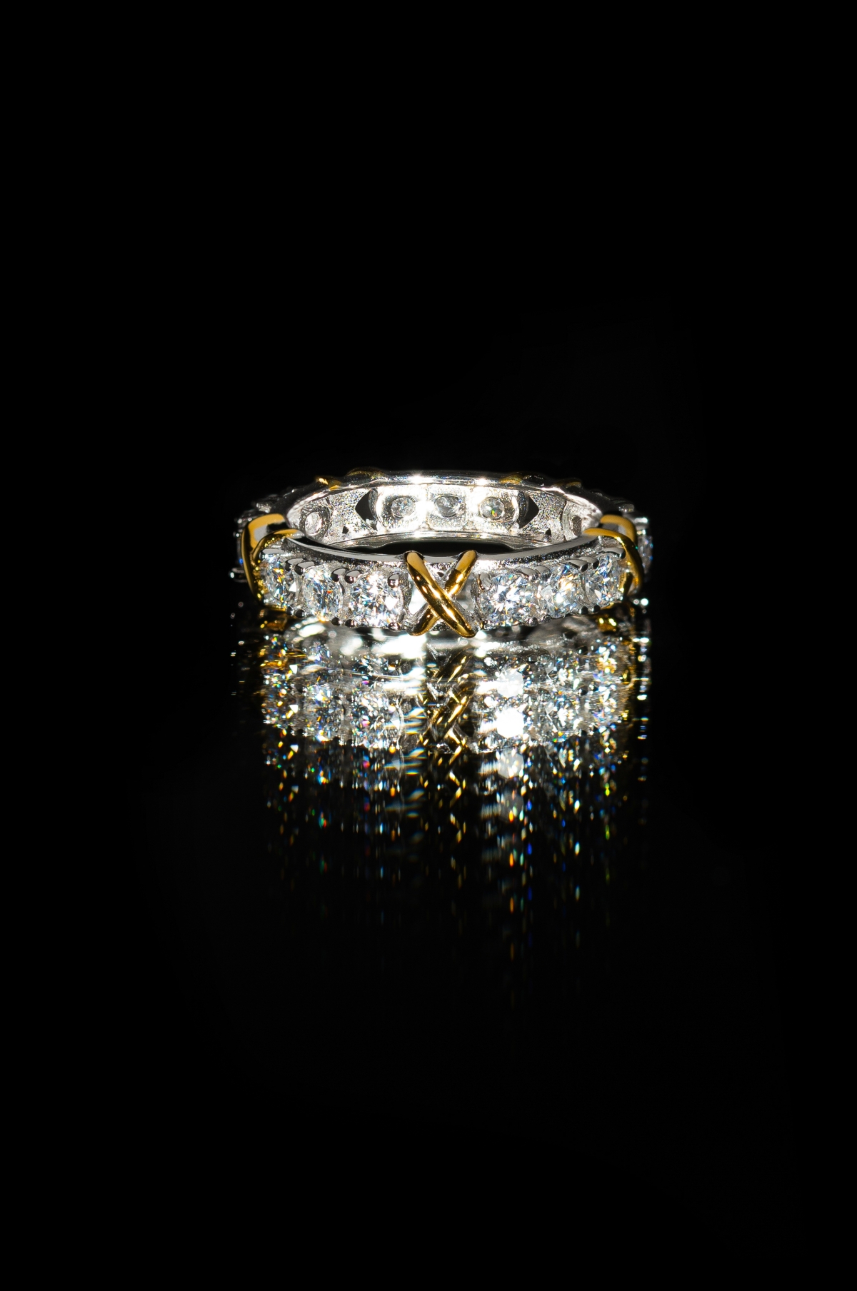 Round brilliant άχρωμος μοϊσανίτης δεμένος σε σκελετό από ασήμι 925 και χρυσές λεπτομέρειες στα πλάγια.