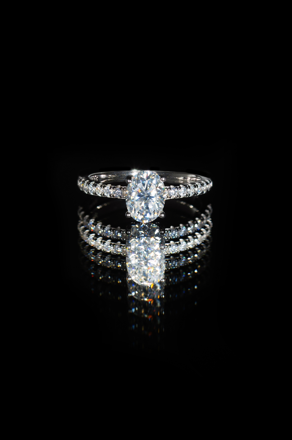 Oval brilliant άχρωμος μοϊσανίτης διακοσμημένος  με μικρότερους