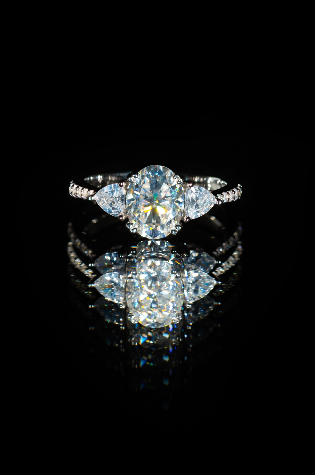 Oval brilliant άχρωμος μοϊσανίτης διακοσμημένος σε pave σχέδιο με μικρότερους