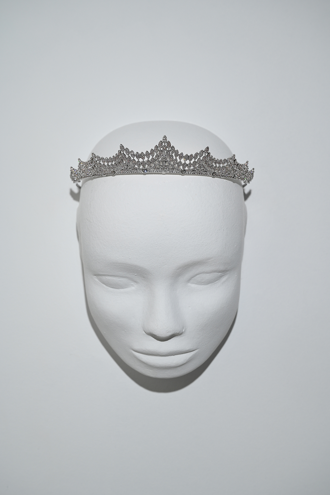 Ζιργκόν hairband με διαφανείς κρυστάλλους και πέρλες σε ασημί σμάλτο.