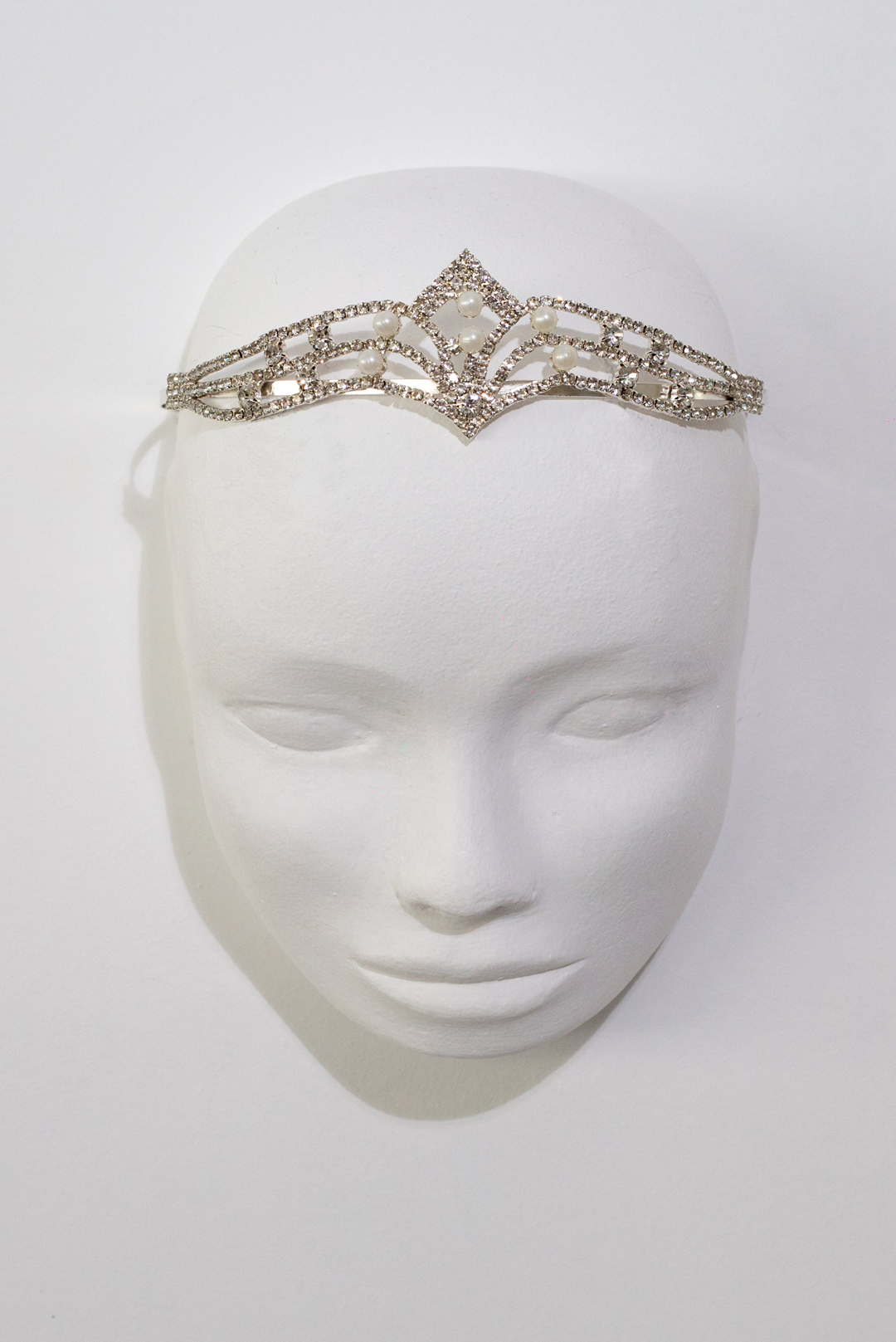 Ζιργκόν hairband με διαφανείς κρυστάλλους σε ασημί σμάλτο.