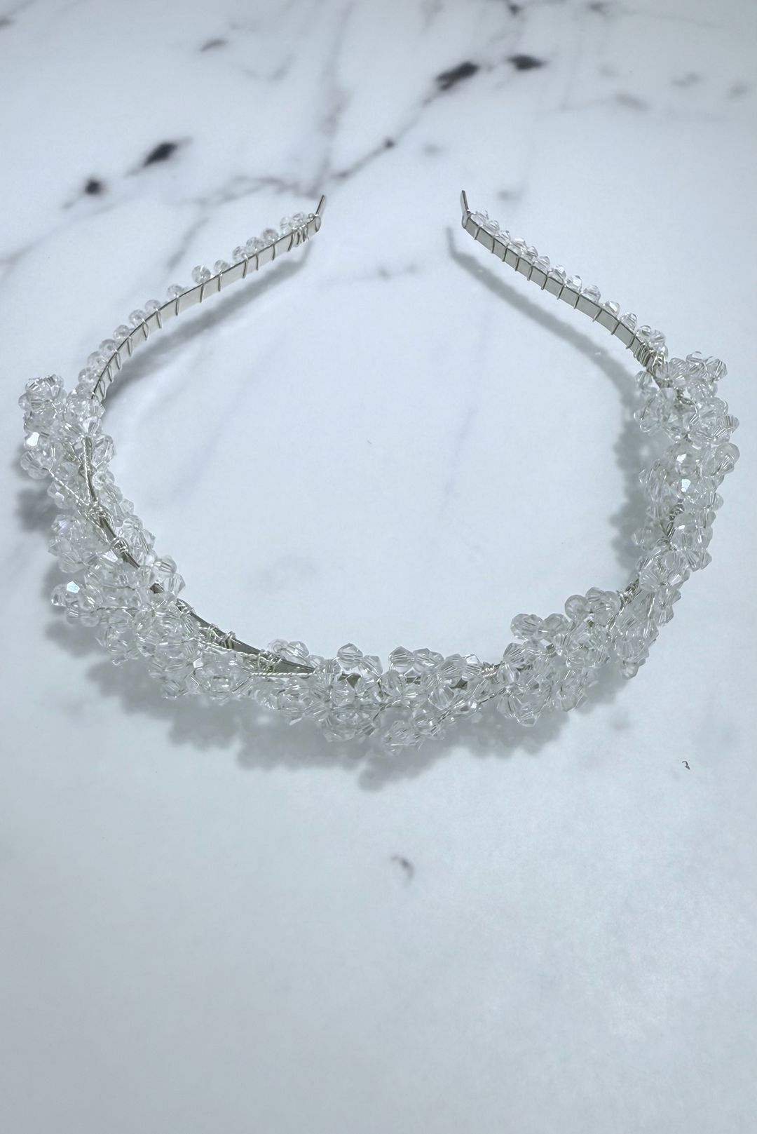 Hairband με διαφανείς κρυστάλλους σε ασημί σμάλτο.