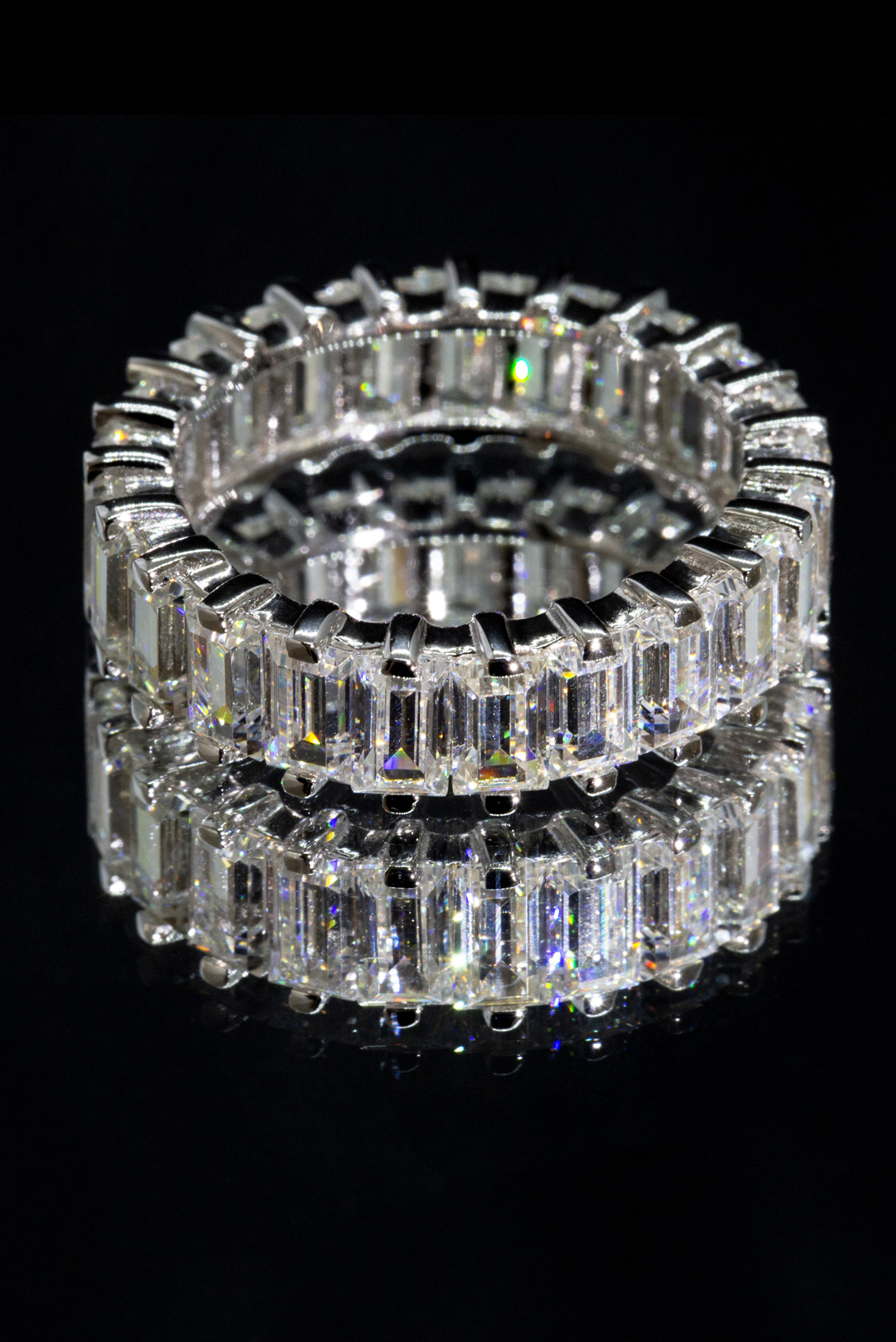 Multiple radiant άχρωμοι μοϊσανίτες δεμένοι σε σκελετό από ασήμι 925. GM: 5,48 Καράτια Βάρος: 4,40