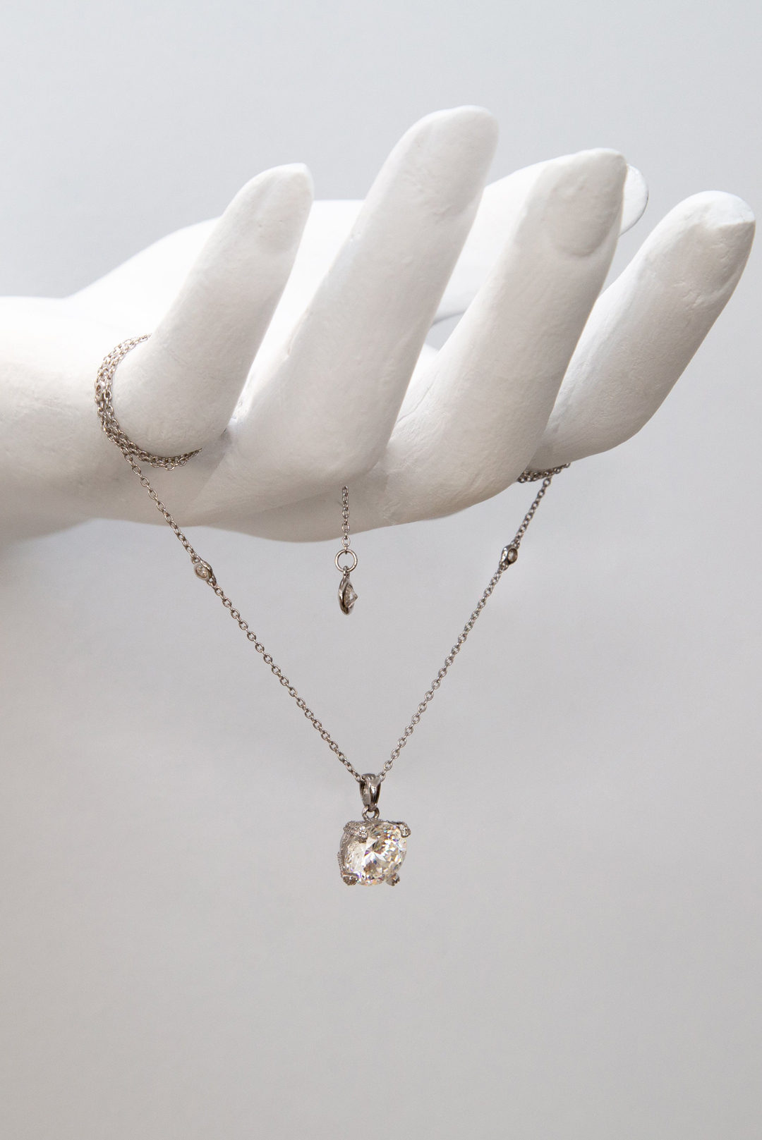 Round brilliant άχρωμο κολιέ μοϊσανίτη δεμένο σε σκελετό από ασήμι 925. GM: 4,32 Καράτια Βάρος: 2.00