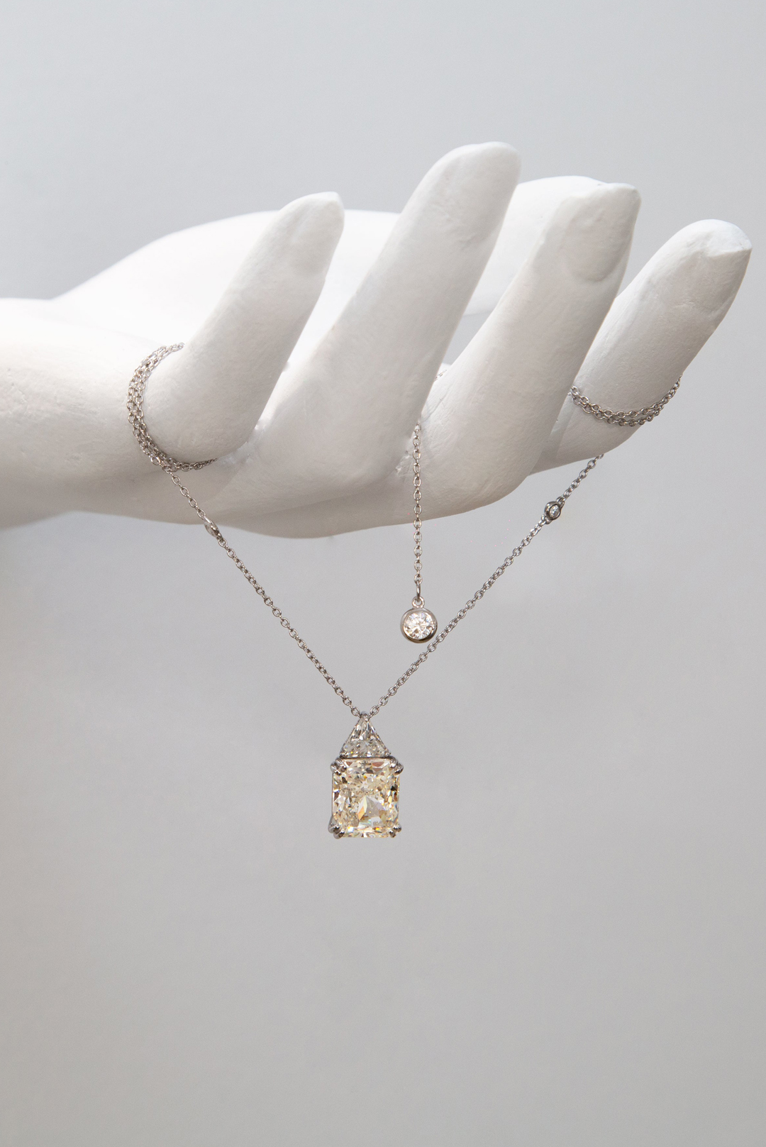 Radiant άχρωμο κολιέ μοϊσανίτη διακοσμημένο σε pave σχέδιο με μικρότερους μοϊσανιτες στα πλαϊνά δεμένο σε σκελετό από ασήμι 925. GM: 4,62 Καράτια Βάρος: 3.50