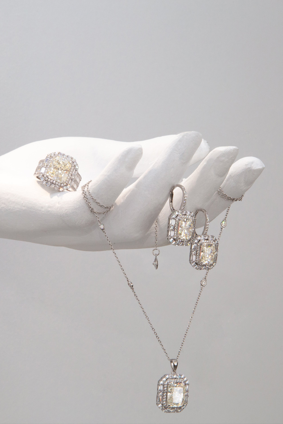 Round άχρωμος μοϊσανίτης  διακοσμημένος σε pave σχέδιο με μικρότερους μοϊσανιτες στα πλαϊνά δεμένο σε σκελετό από ασήμι 925. GM: 24,57 Καράτια Βάρος: 6.00