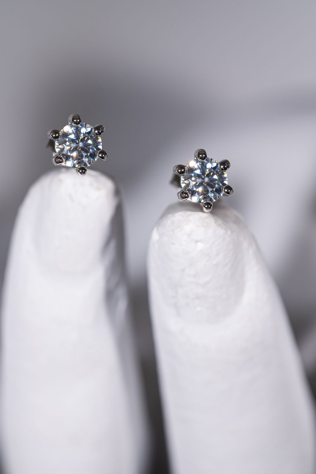 Round brilliant άχρωμα σκουλαρίκια μοϊσανίτη δεμένα σε σκελετό από ασήμι 925. GM: 1.50 και 2.00 Καράτια Βάρος: 1,00 και 4.00 αντιστοίχος GRA Certified