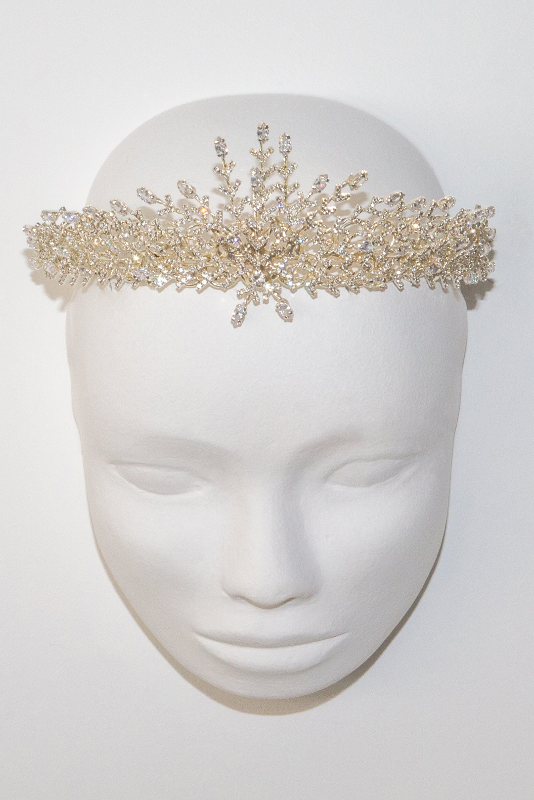 Κοντή χειροποίητη τιάρα με διάφανα κρύσταλλα σε ασημί σμάλτο.