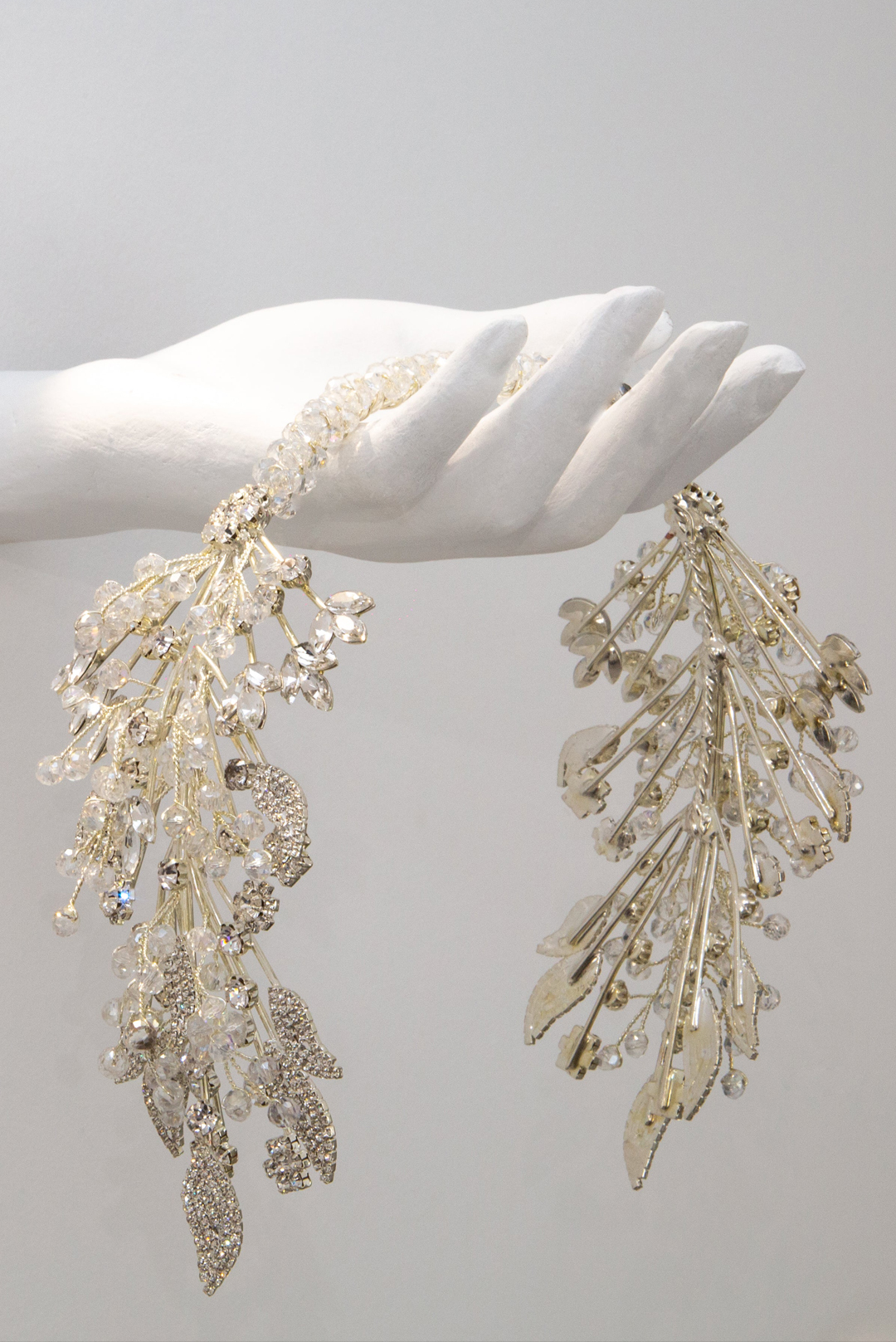 Χειροποίητη τιάρα μεσαίου μεγέθους σε στυλ στεφανίου με διάφανα κρύσταλλα σε ασημί σμάλτο.