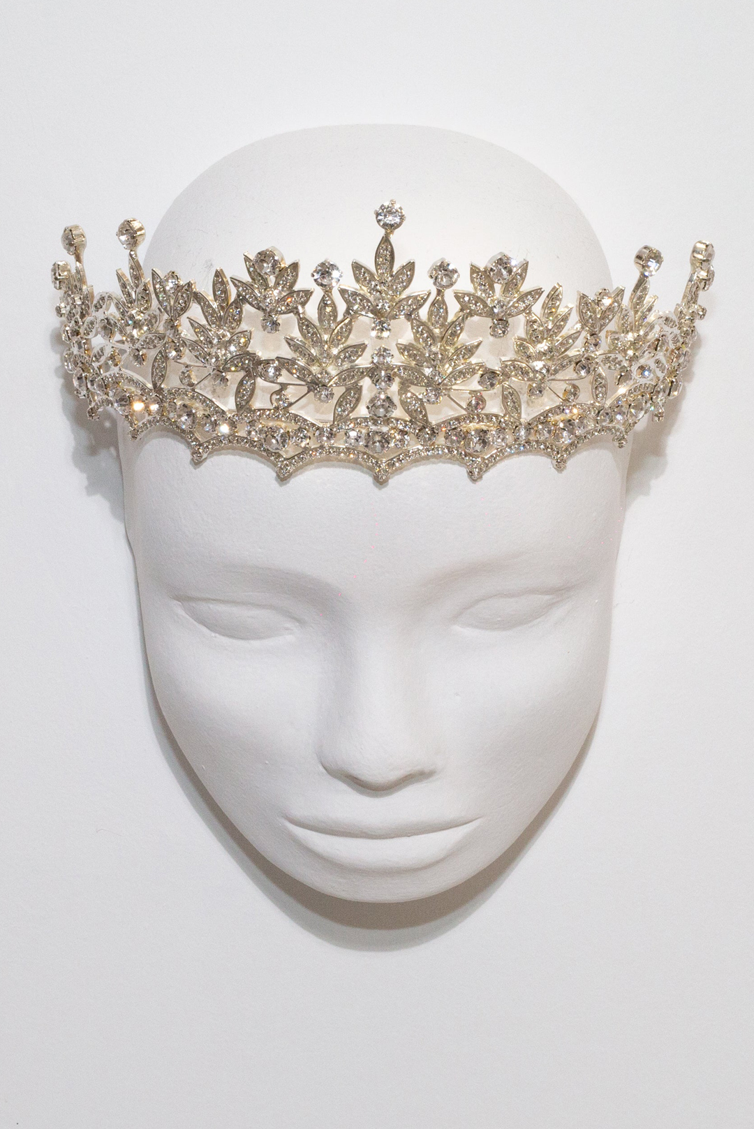 Μεσαία χειροποίητη τιάρα με διάφανα κρύσταλλα σε ασημί σμάλτο.