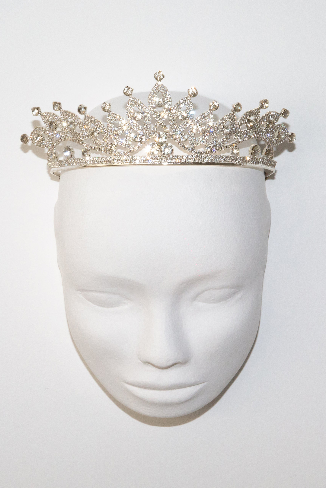 Μεσαία χειροποίητη τιάρα με διάφανα κρύσταλλα σε ασημί σμάλτο.