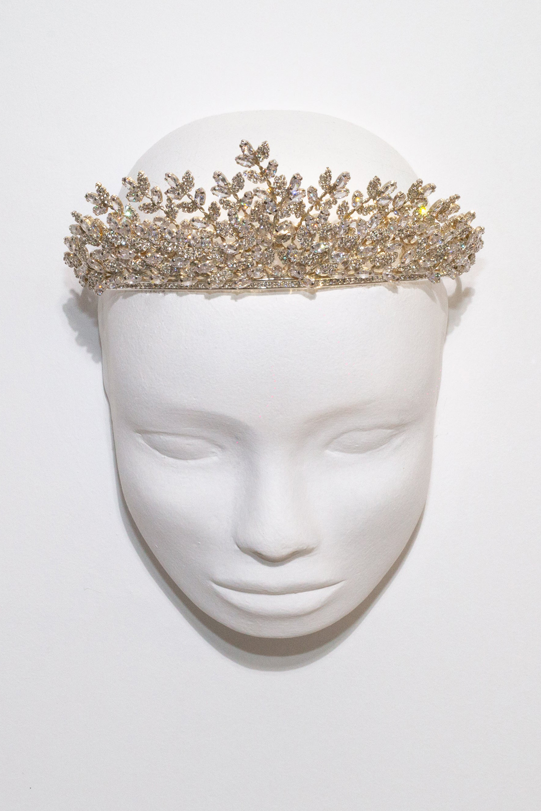 Μεσαία χειροποίητη τιάρα με διάφανα κρύσταλλα σε ασημί σμάλτο.