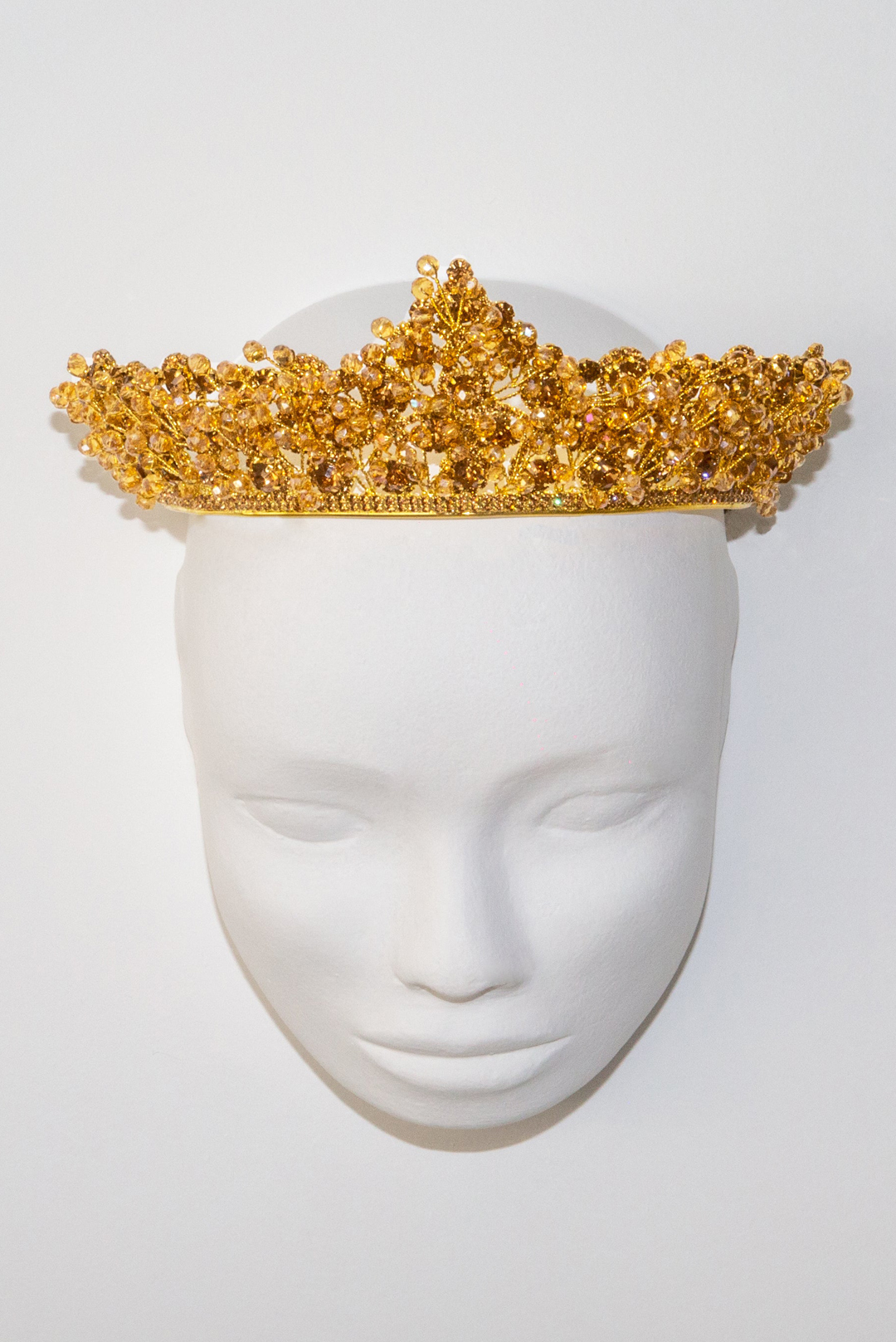 Χειροποίητη τιάρα μεσαίου μεγέθους με διάφανα χρυσά κρύσταλλα, επίχρυση.