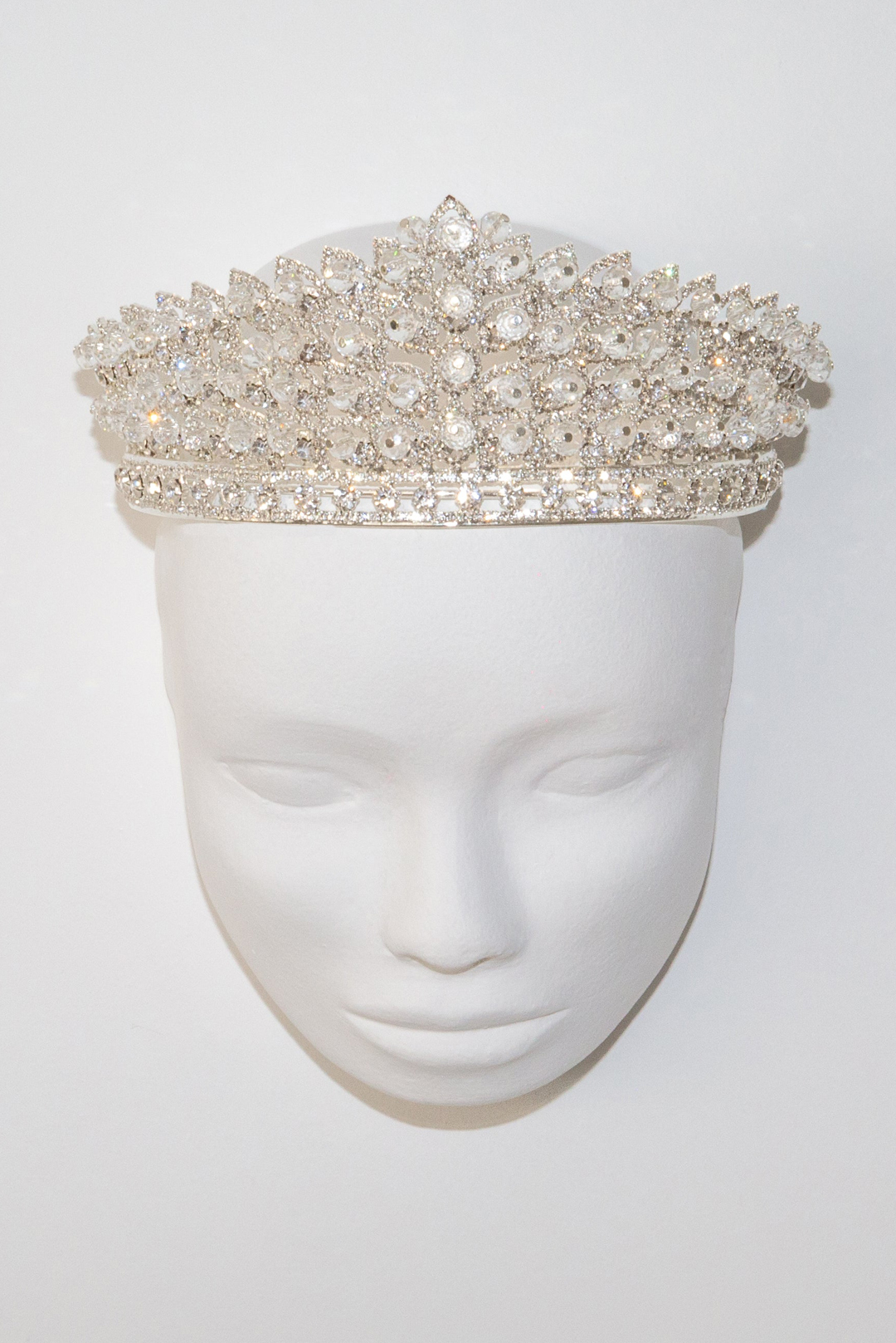 Ψηλή χειροποίητη τιάρα με διάφανα κρύσταλλα σε ασημί σμάλτο.
