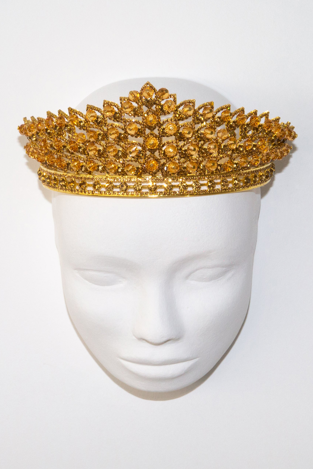 Ψηλή χειροποίητη τιάρα με διάφανα κρύσταλλα επιχρυσωμένα.