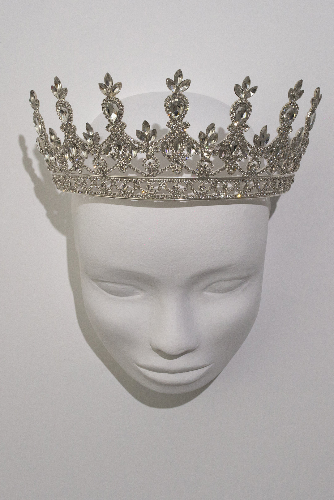 Ψηλή χειροποίητη τιάρα με διάφανα κρύσταλλα σε ασημί σμάλτο.