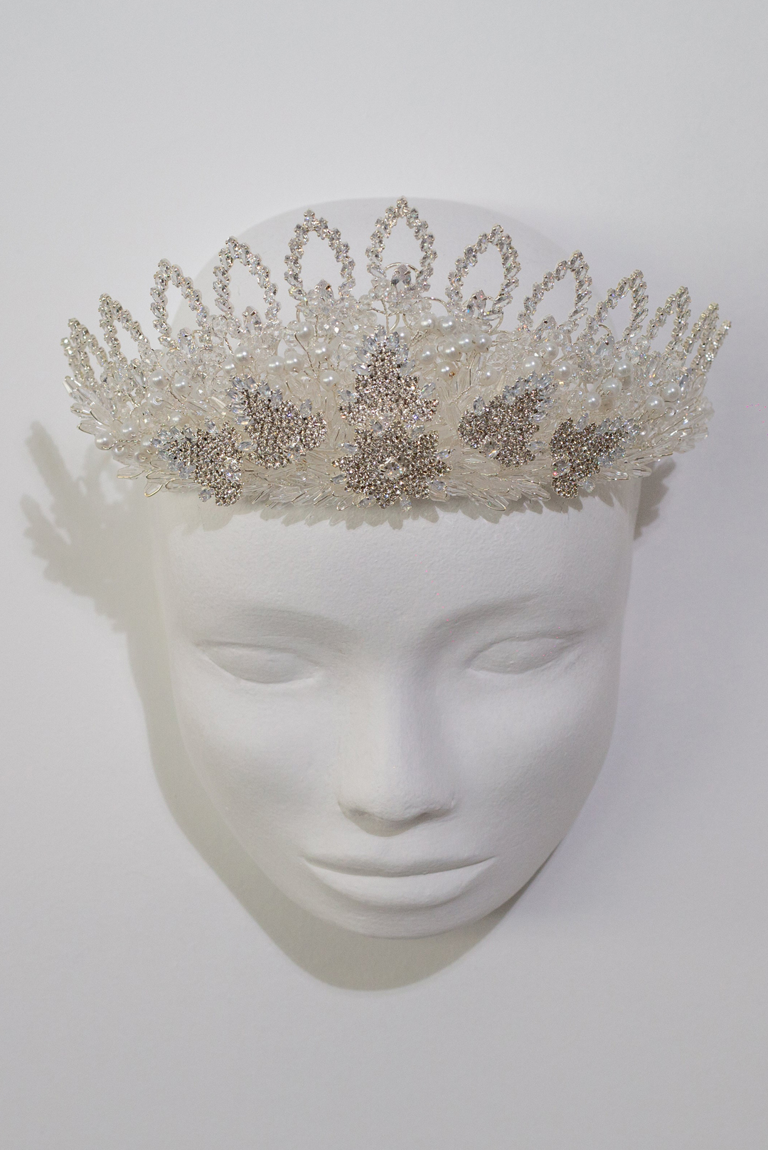 Ψηλή χειροποίητη τιάρα με διάφανα κρύσταλλα σε ασημί σμάλτο.