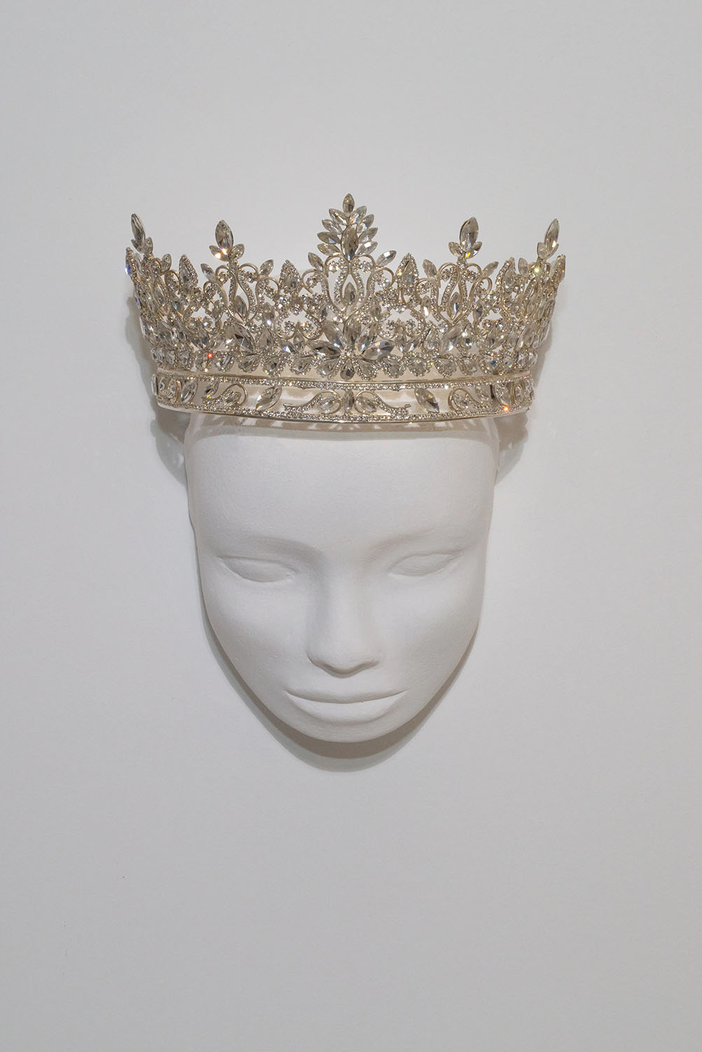Ψηλή χειροποίητη τιάρα με διάφανα κρύσταλλα σε ασημί σμάλτο.