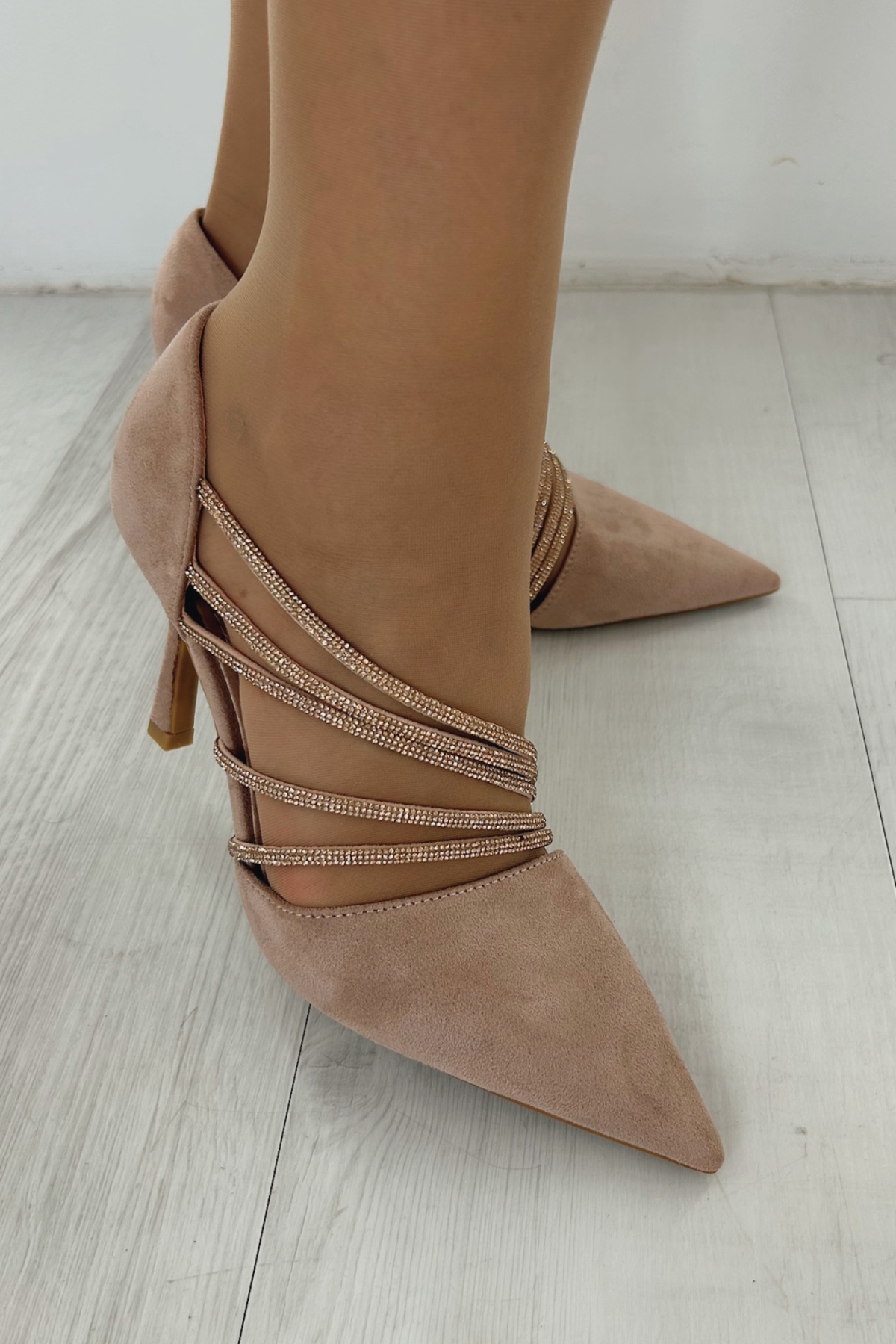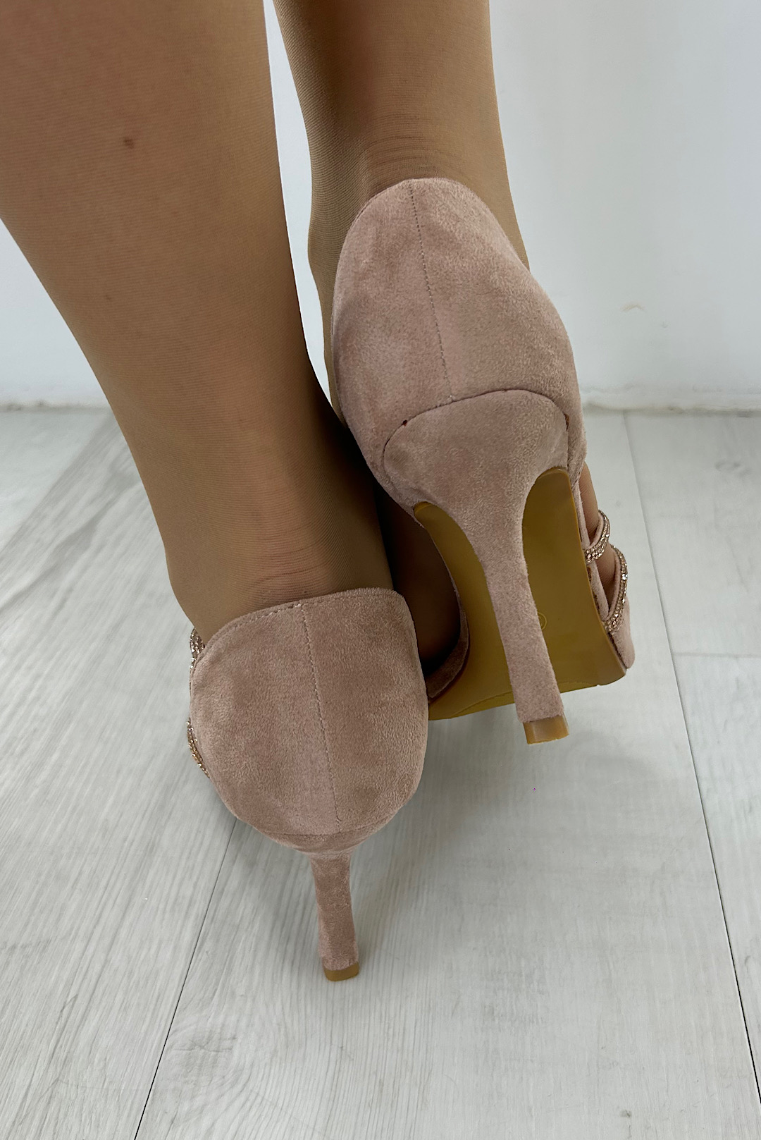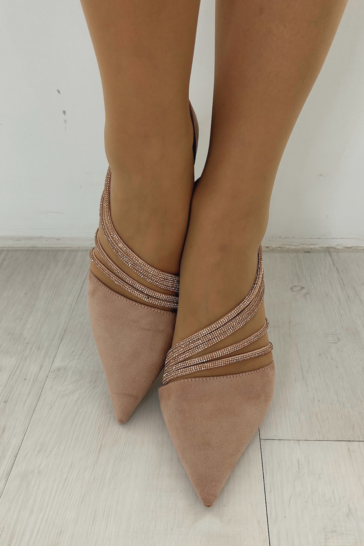 Γόβες σουέτ σε σαμπανιζέμε χρώμα λουράκια με στράς