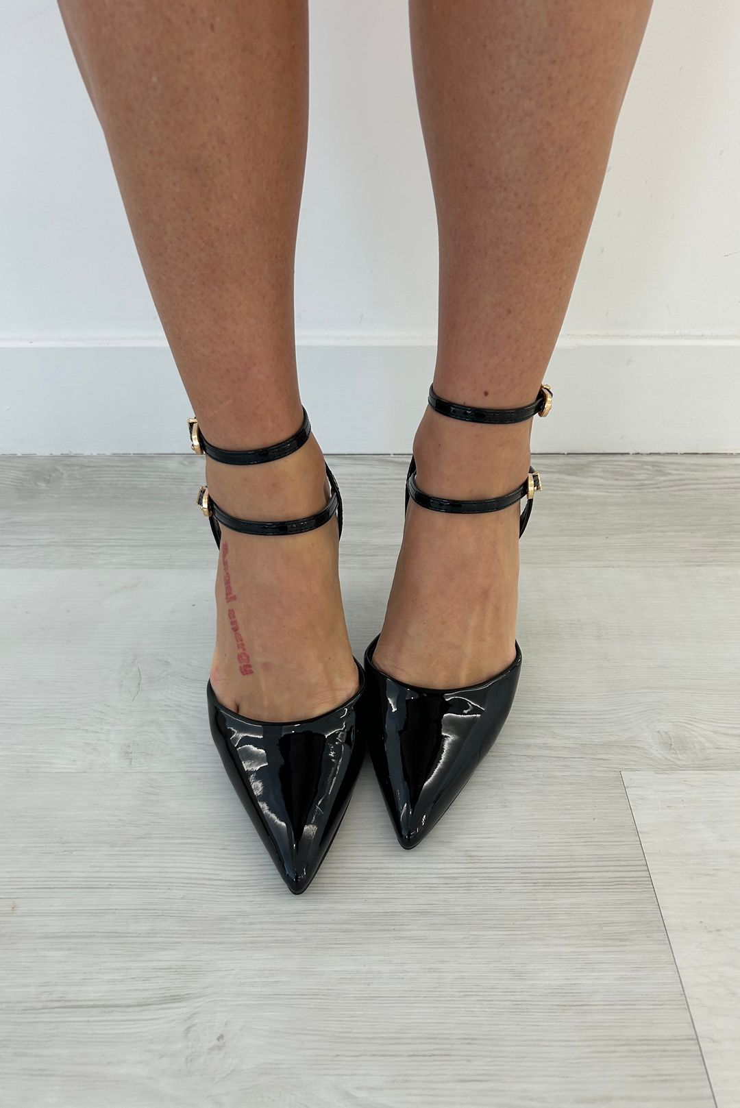Γυαλιστερές γόβες σε μπέζ και μαύρο