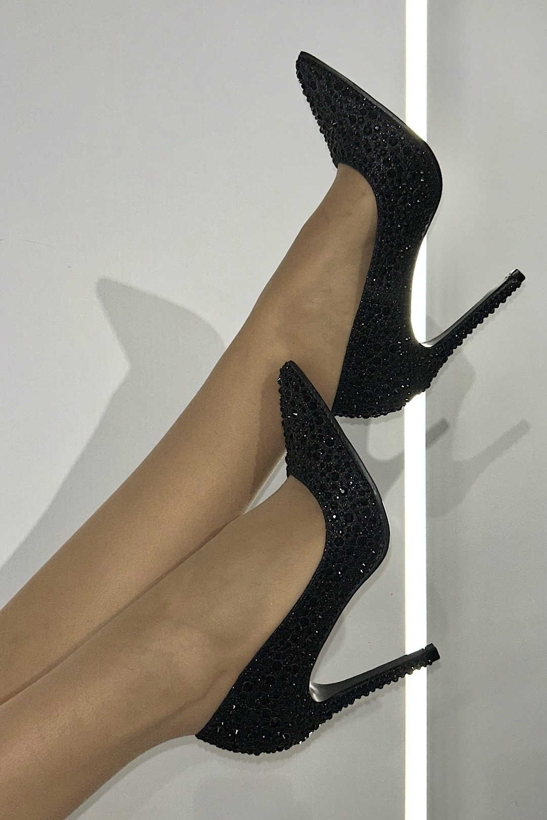 Γόβες σε σαμπανιζέ και μαύρο χρώμα με λαμπερές πέτρες