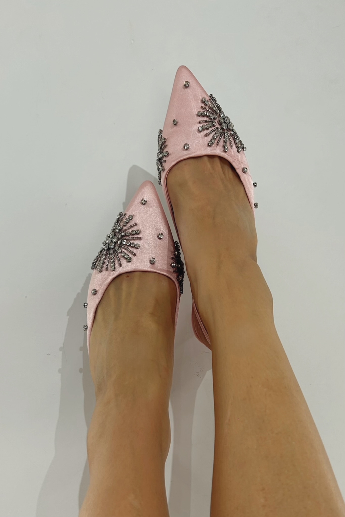Τακούνια σε ρόζ χρώμα, με διάφανες πέτρες.