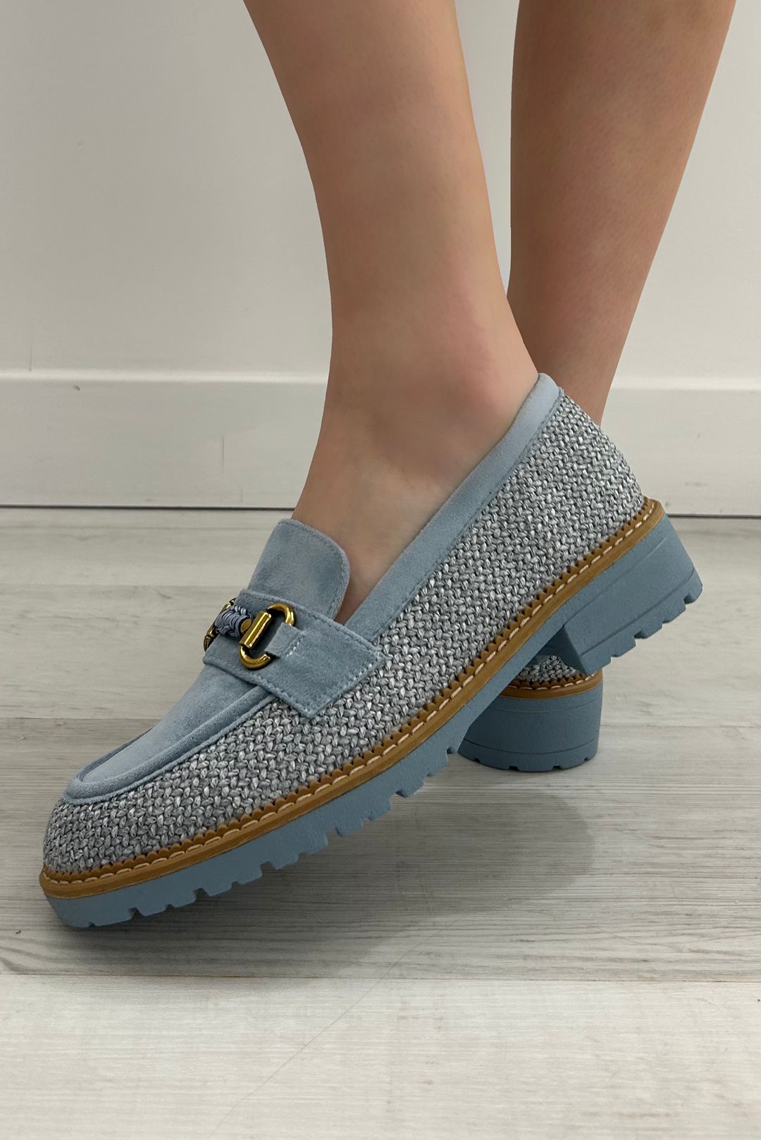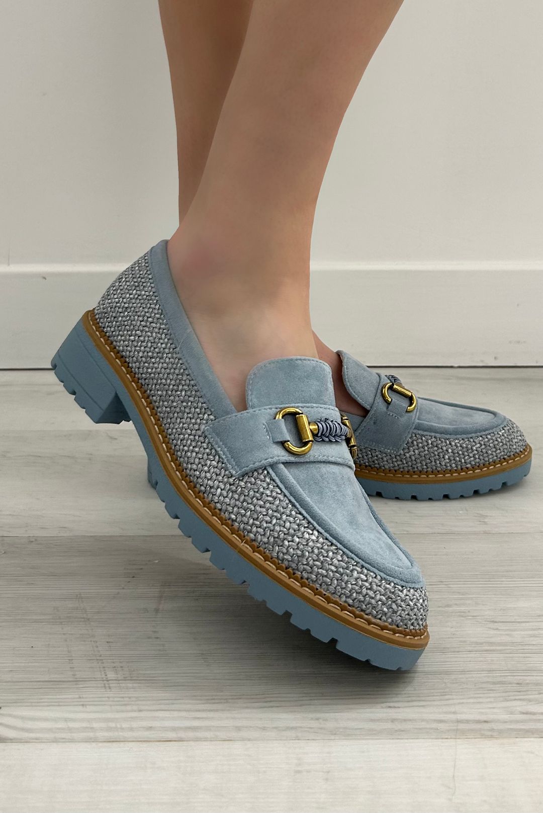 Μοκασίνια σε μαύρο, κάμελ, και μπλε χρώματα