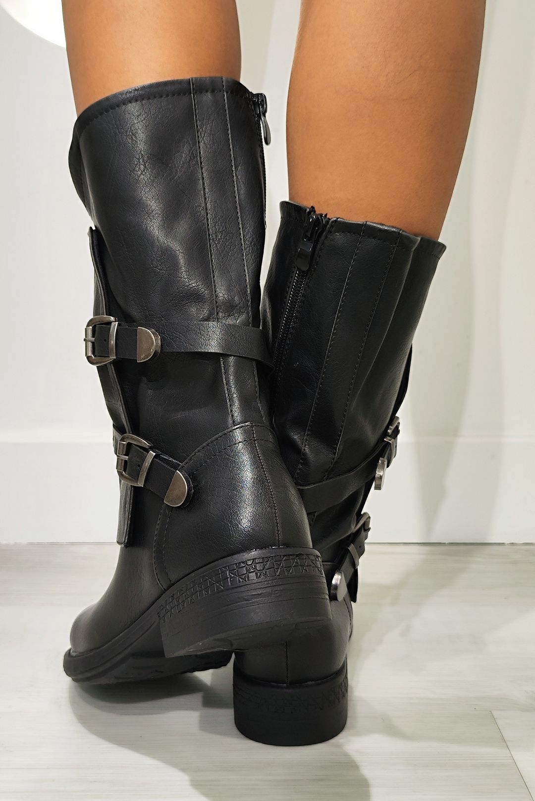 Μπότες σε δερμάτινη σε χρώματα τζίν, μαύρο και camel.