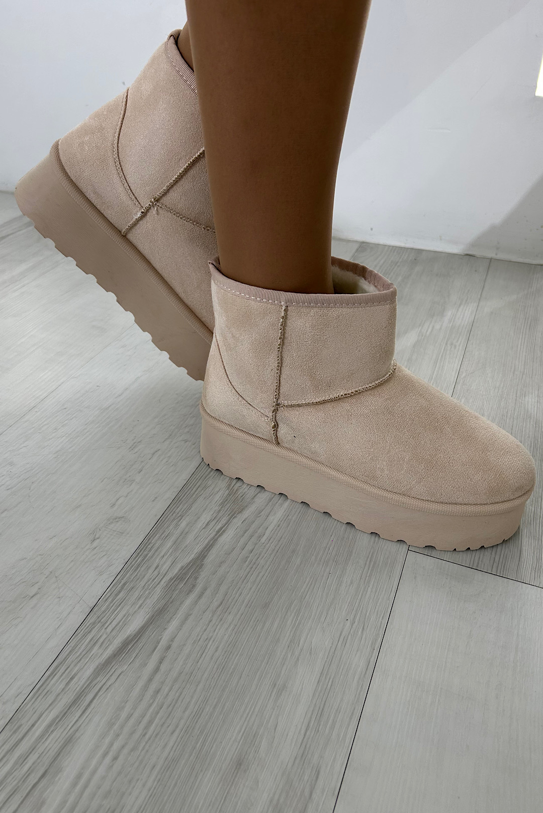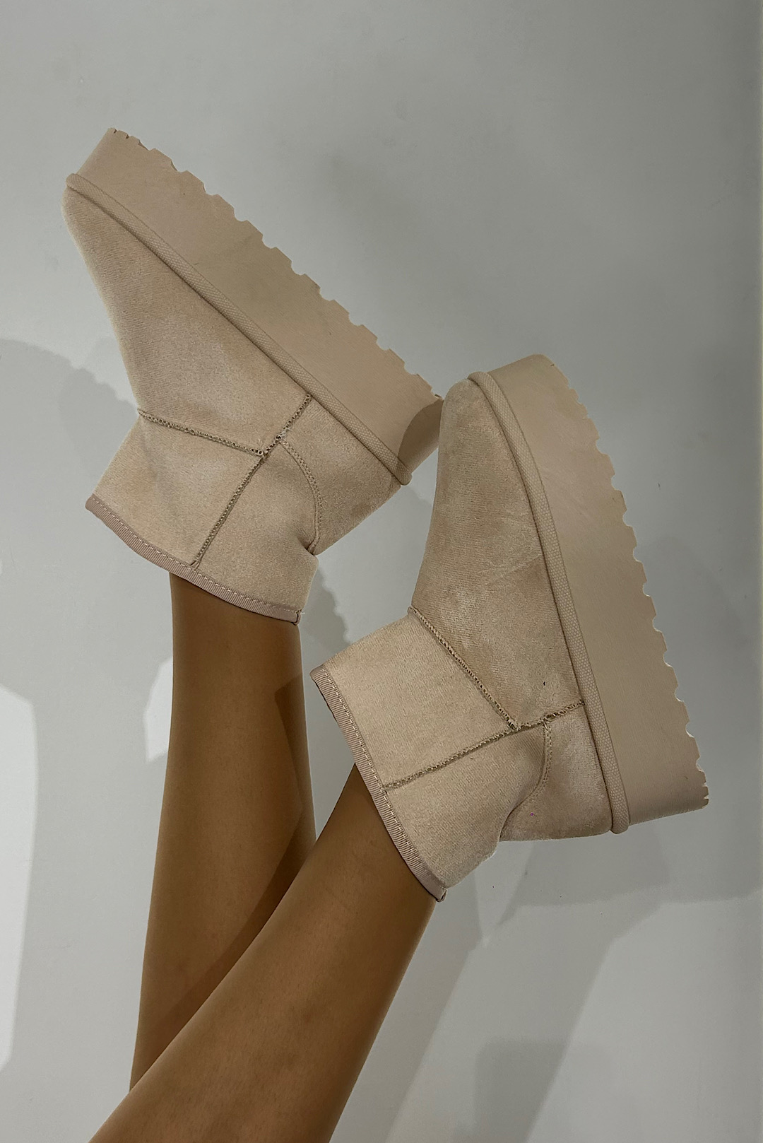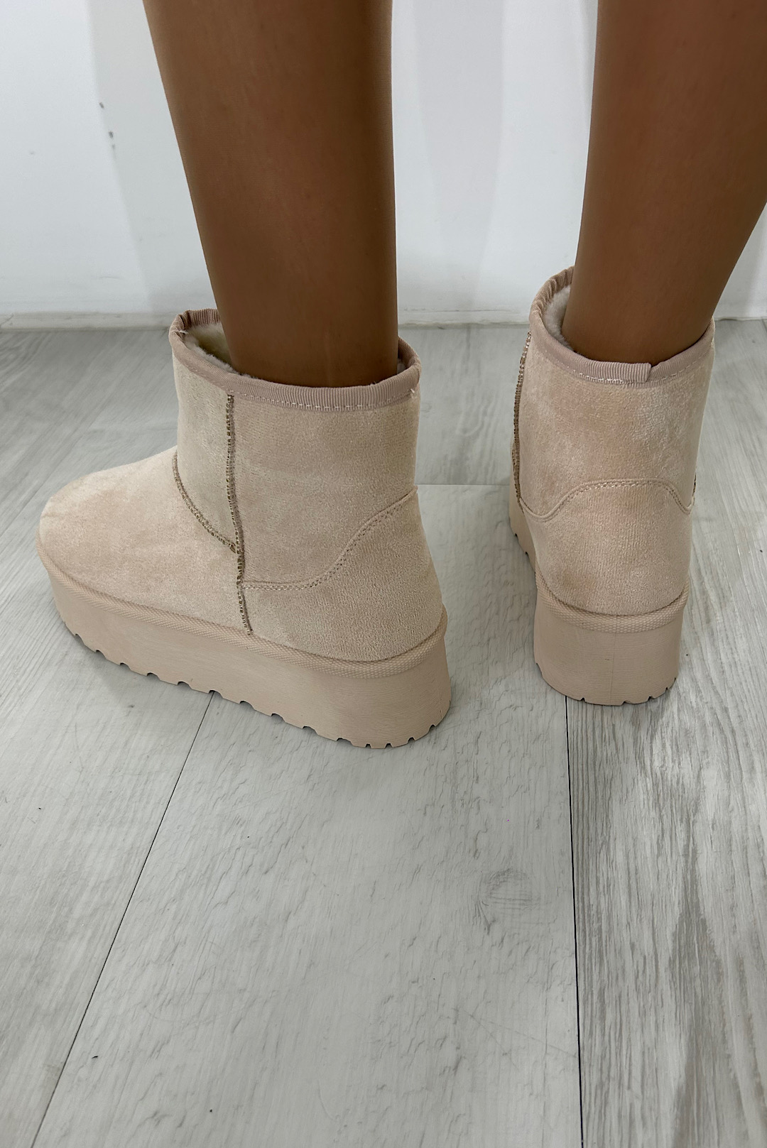 Δίπατα μποτάκια σε μαύρο , μπέζ και εκρού με συνθετική γούνα στο εσωτερικό