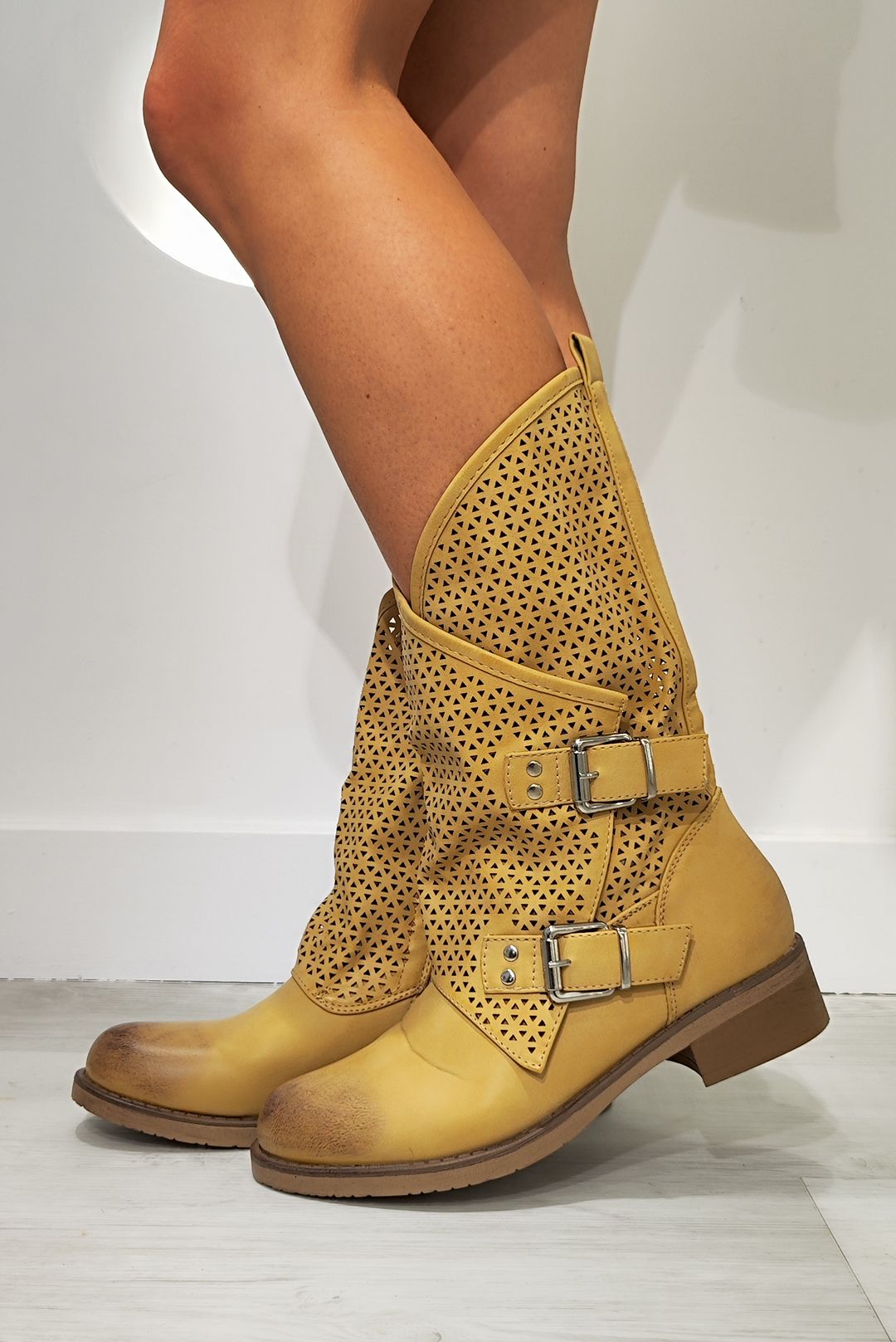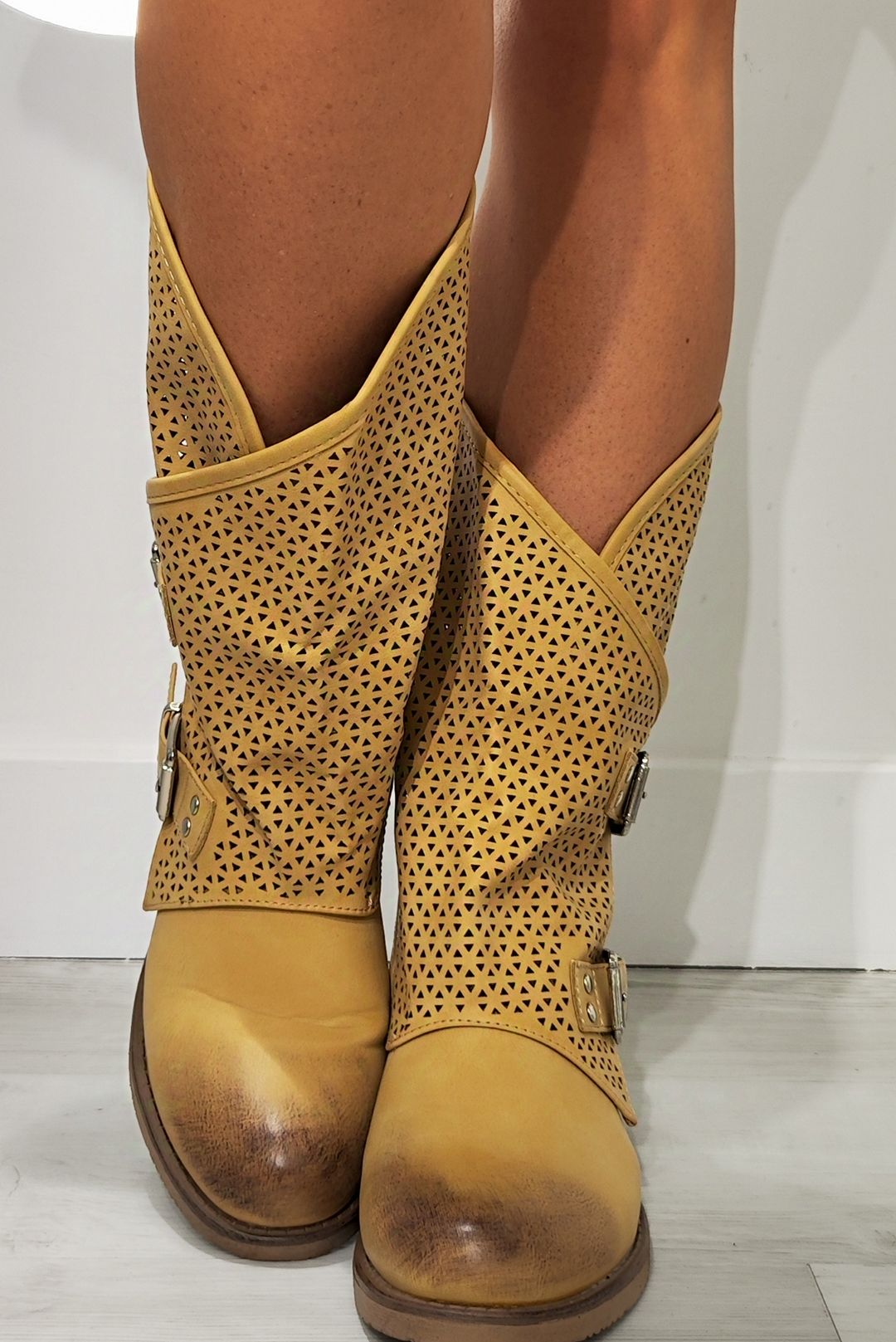 Μπότες με συνθετικό δέρμα σε χρώματα camel και tan
