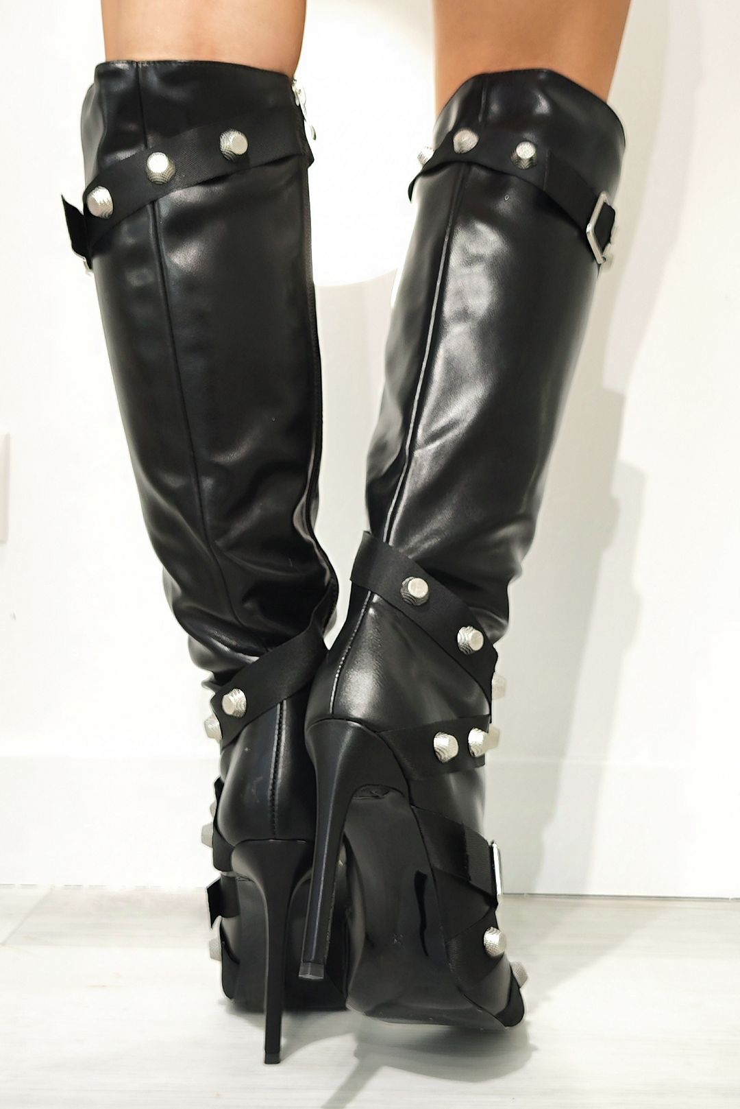 Ψηλές μπότες  σε δερματίνη σε με τρούκς