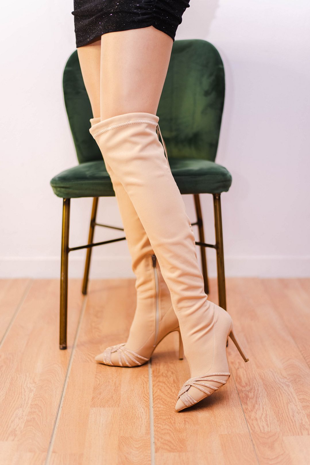 Μποτάκια σε ύφασμα σε μπεζ απόχρωση