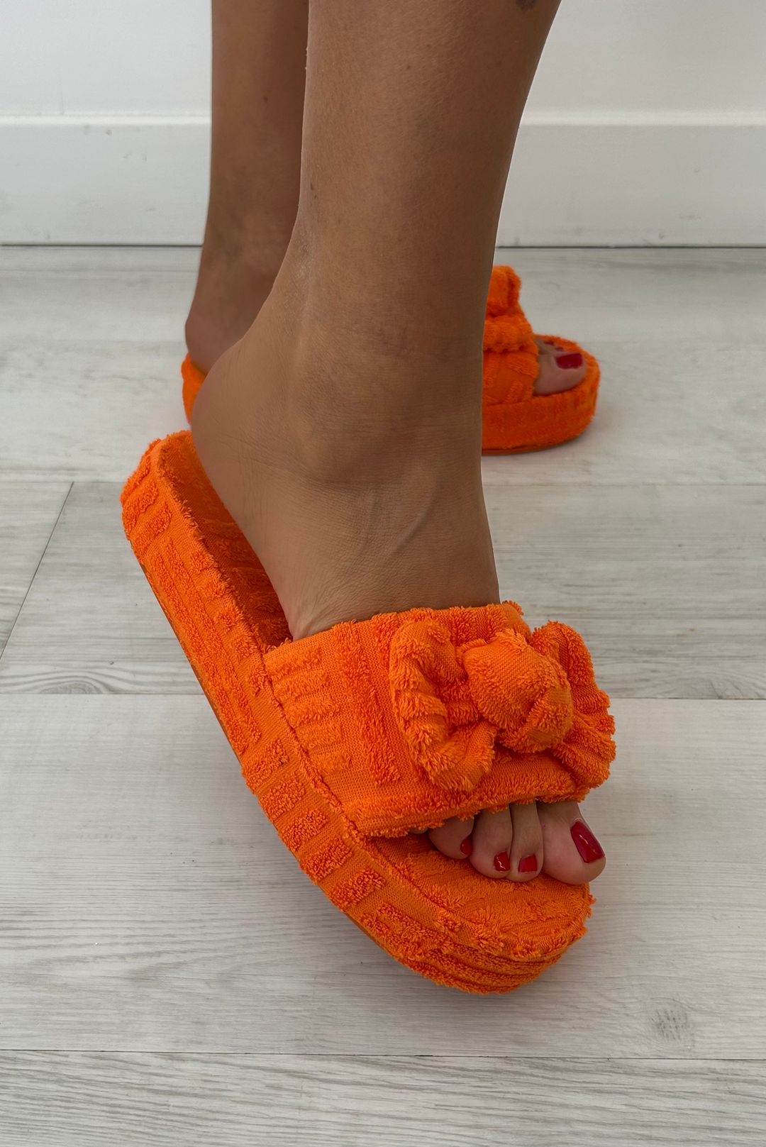 Παντόφλες σε μαύρο, πορτοκαλ,ι και μπεζ χρώματα.