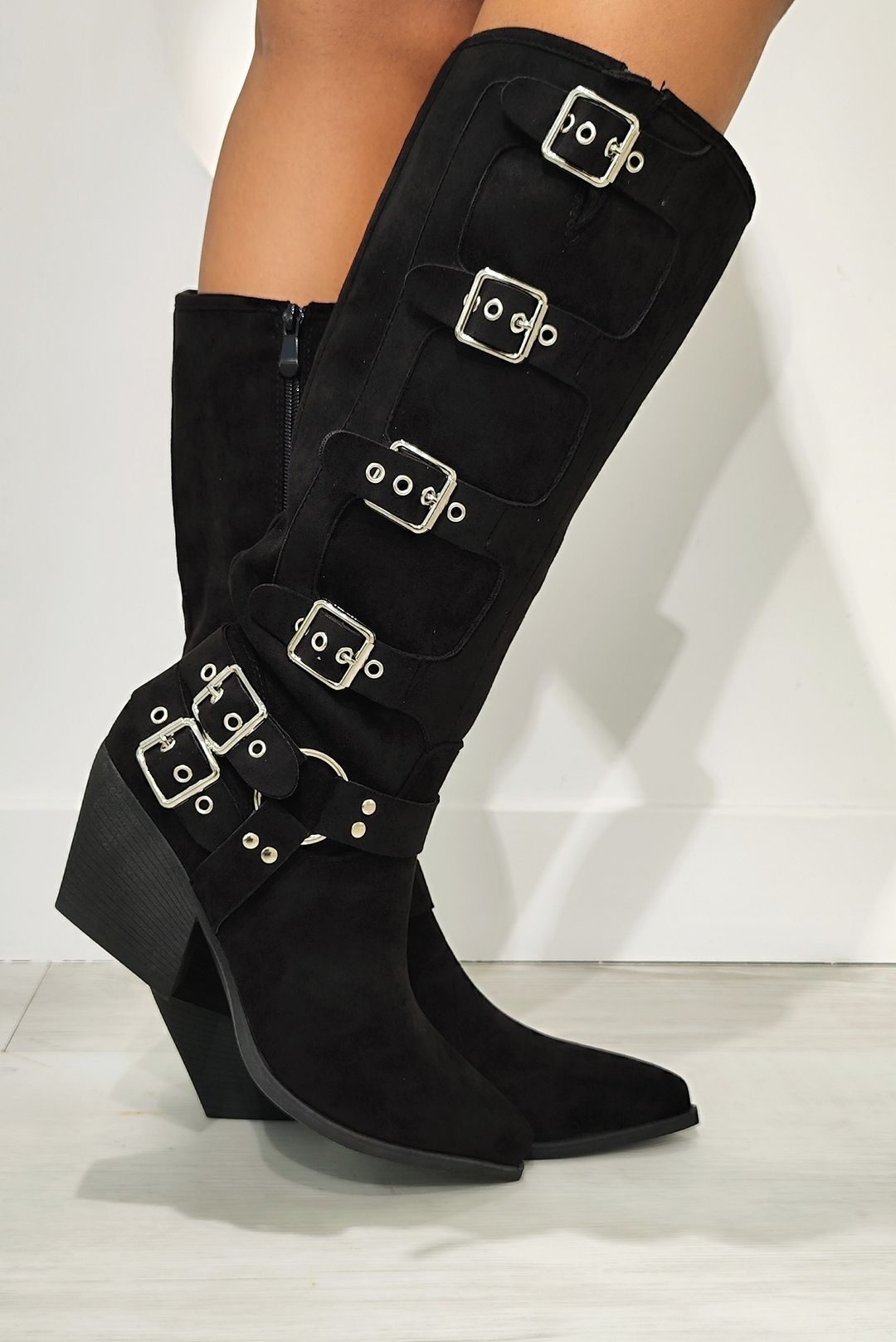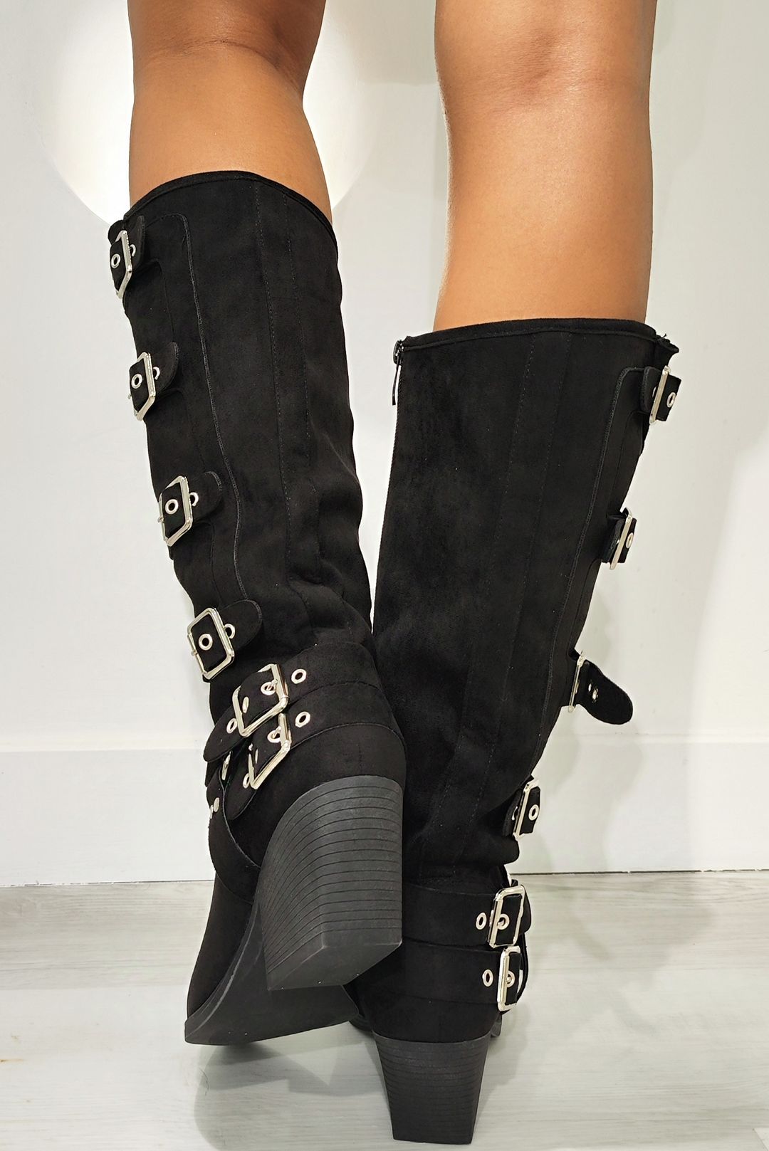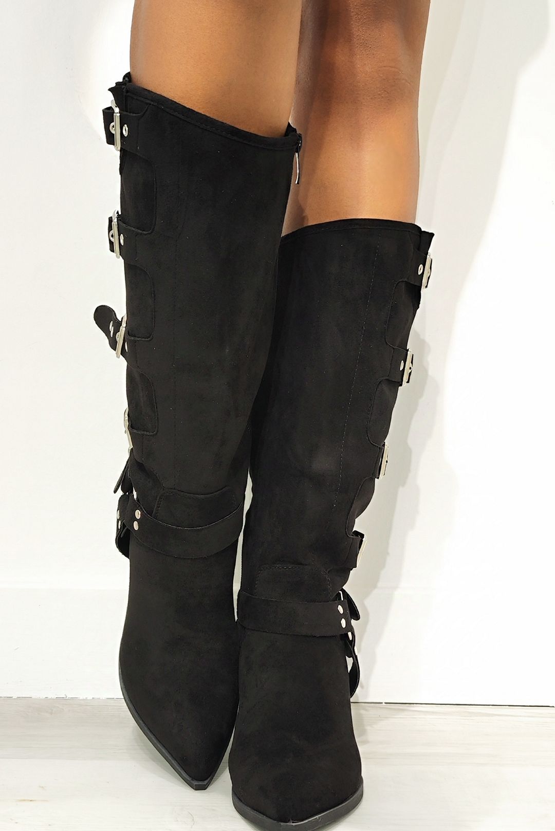 Ψηλή μπότα σε suede effect σε μαύρο και χακί