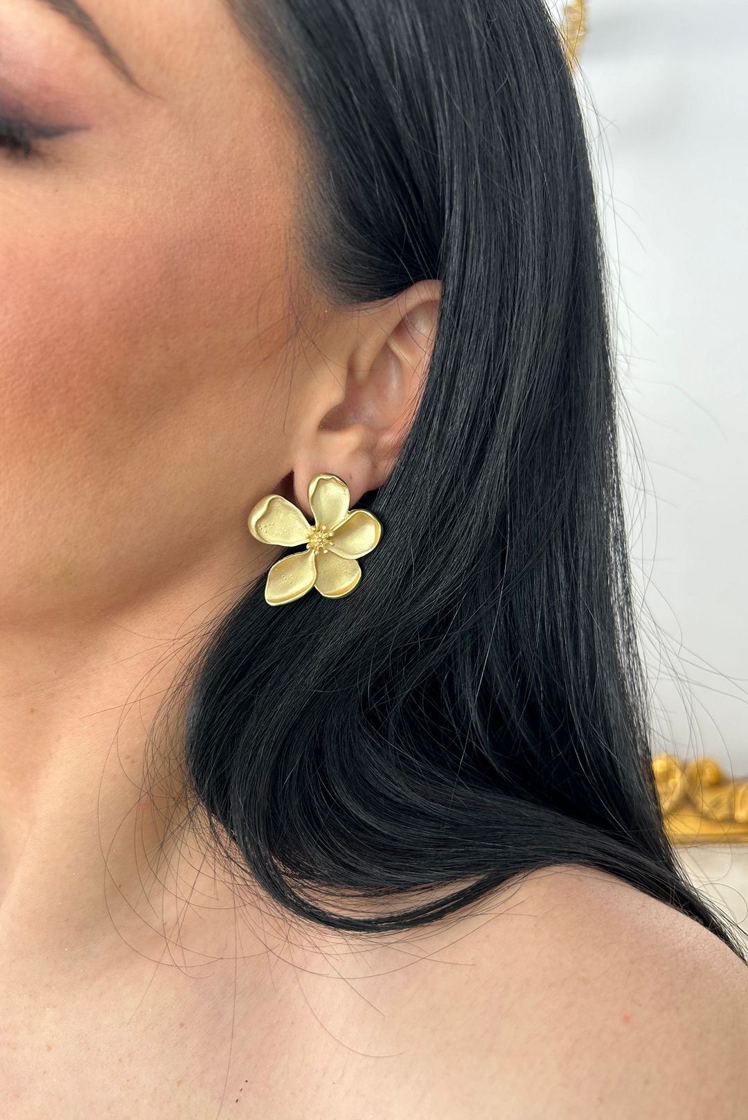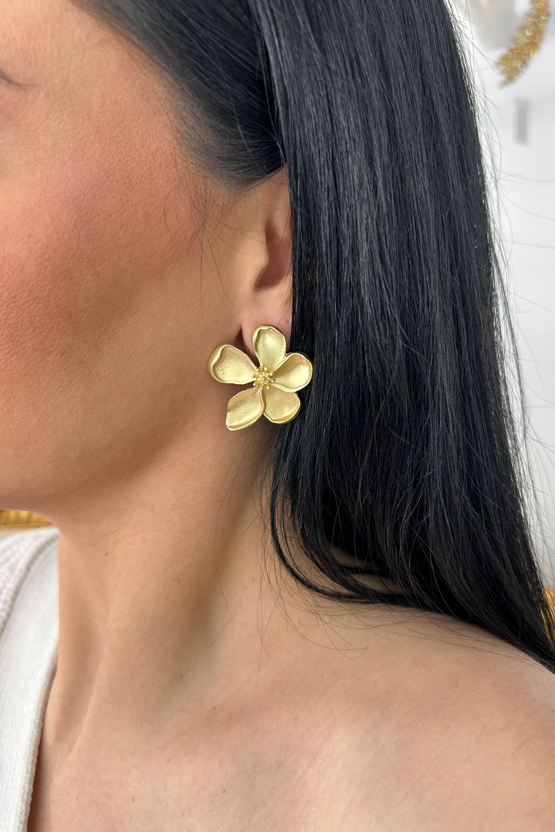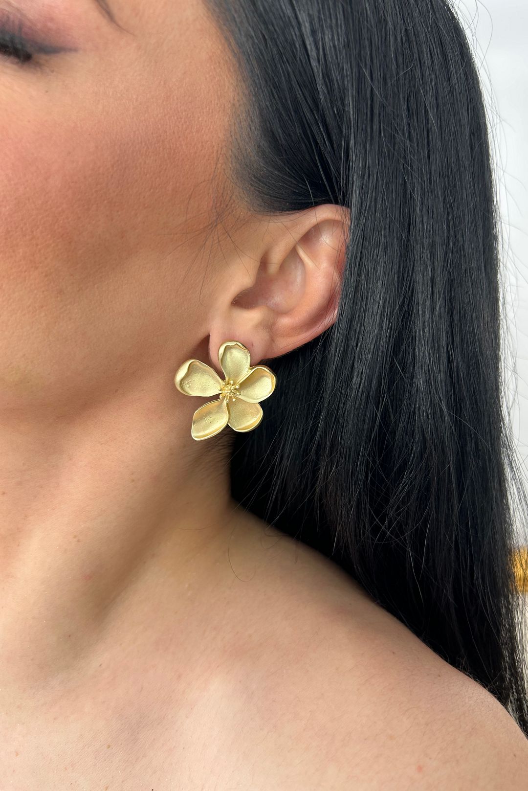 Επιχρυσωμένα κοντά σκουλαρίκια σε σχήμα λουλουδιού.