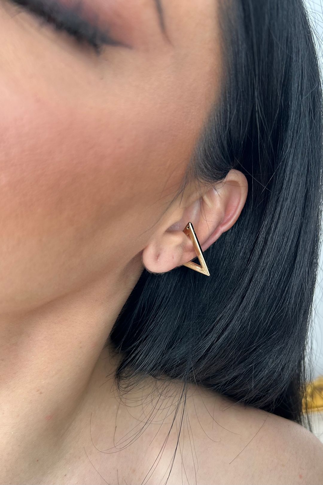 Τριγώνα επιχρυσωμένα κοντά σκουλαρίκια.