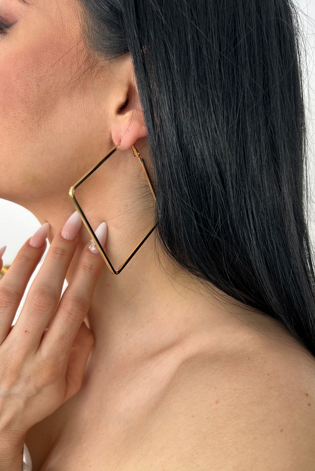 Τετράγωνα επιχρυσωμένα κρεμαστά σκουλαρίκια.Διάμετρος 6 εκατοστά