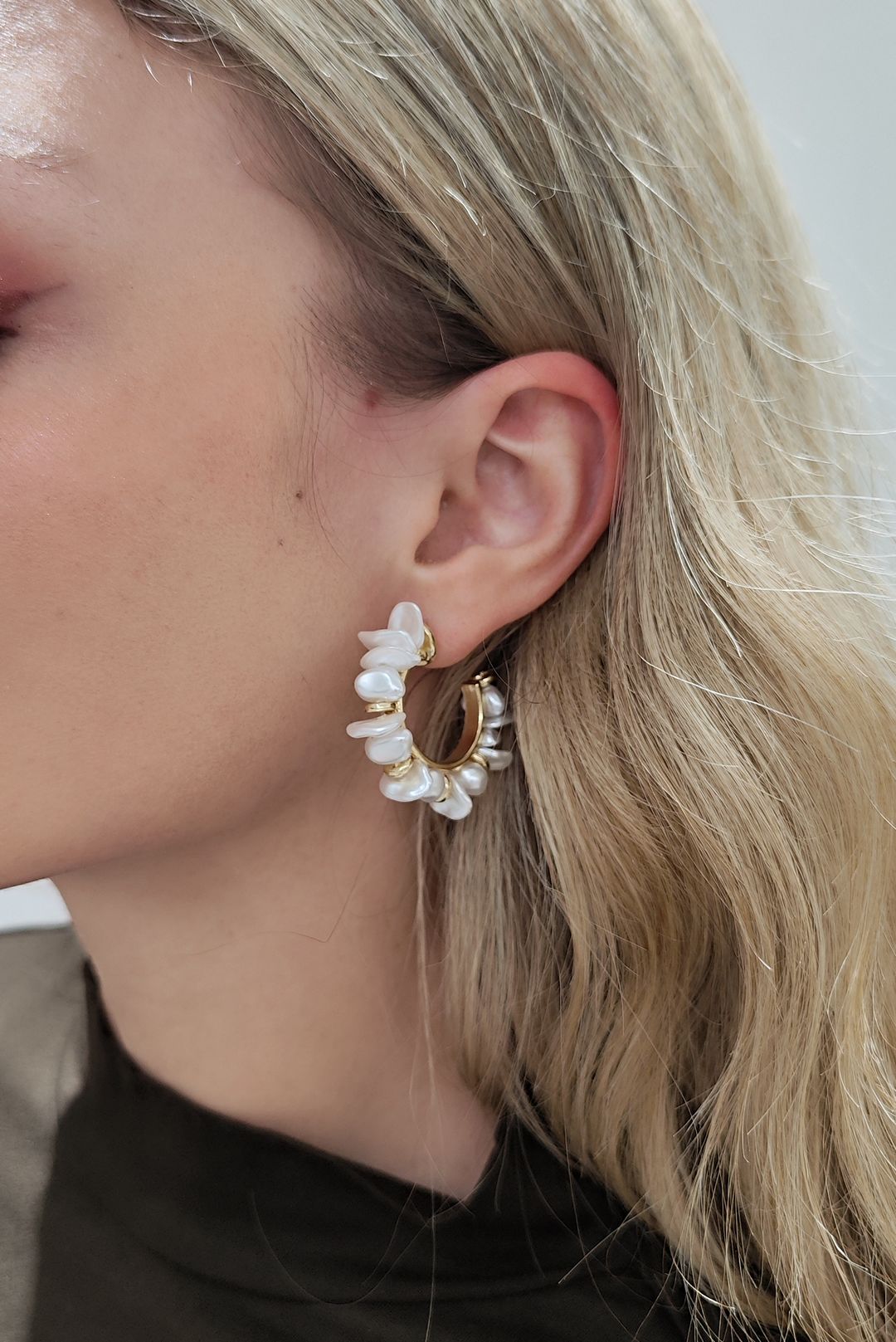Κοντά σκουλαρίκια σε απόχρωση χρυσού με πέρλες.