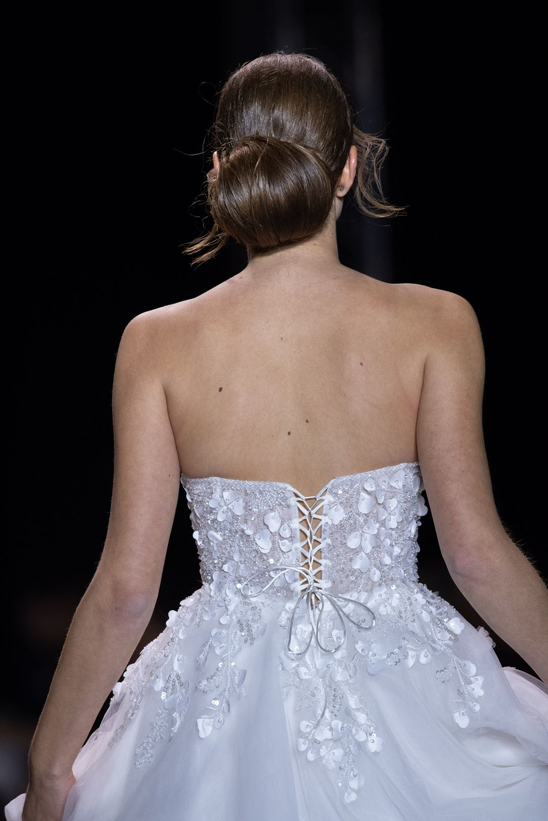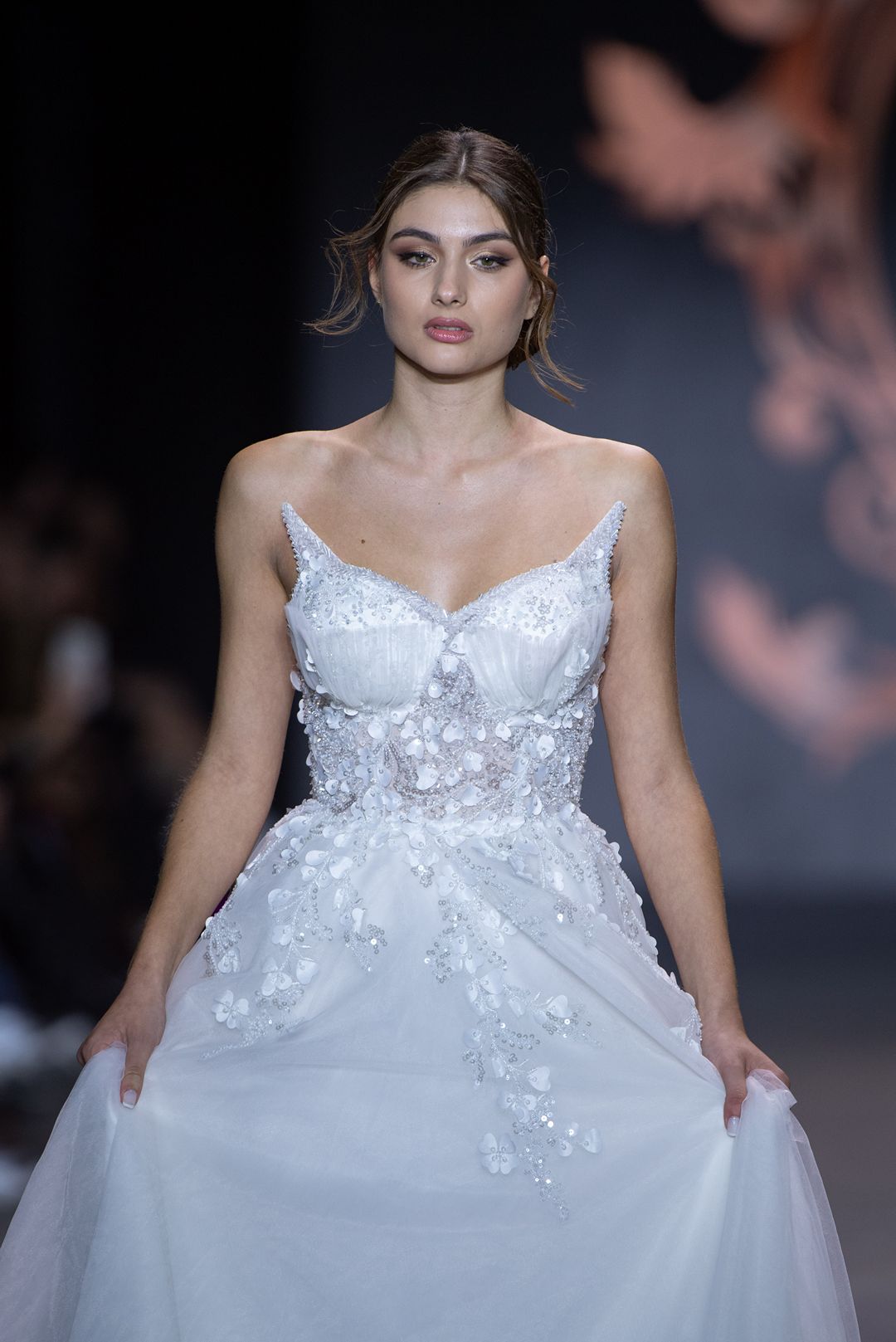 Εντυπωσιακό χειροποίητο λευκό νυφικό σε Bohemian στυλ με κορσέ διακοσμημένο με κρυστάλoυς και ουρά 1μ